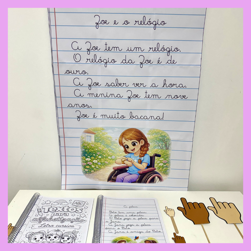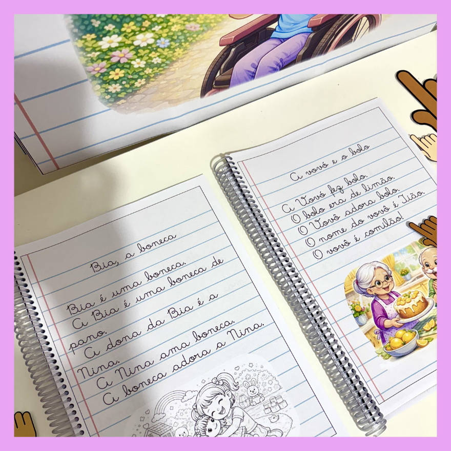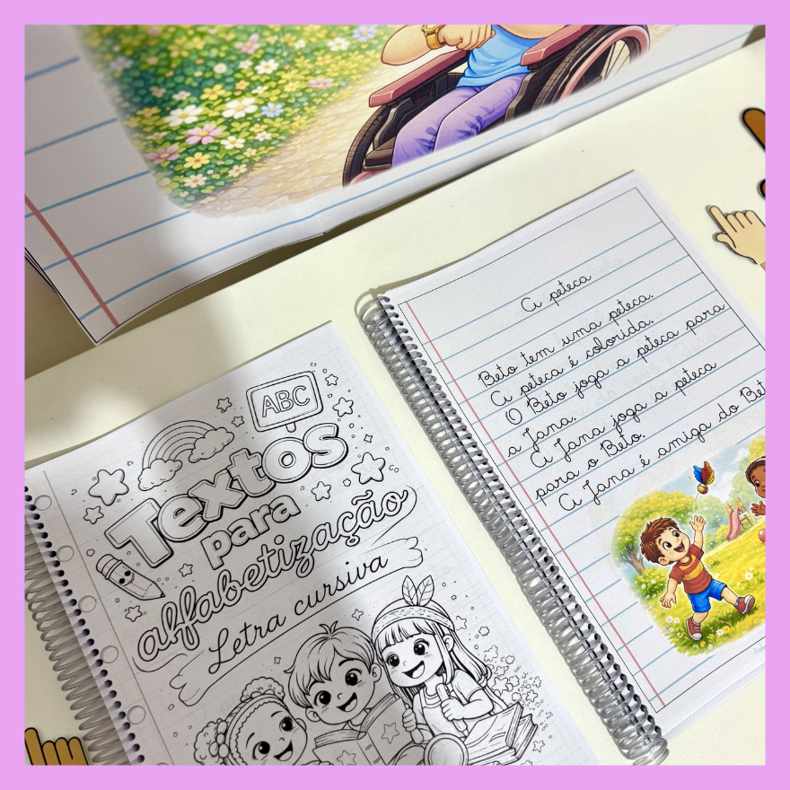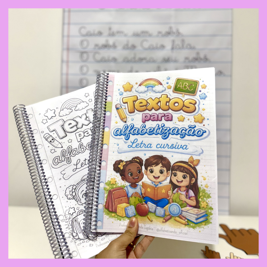 - Apostila com os 30 textos na versão colorida Letra cursiva