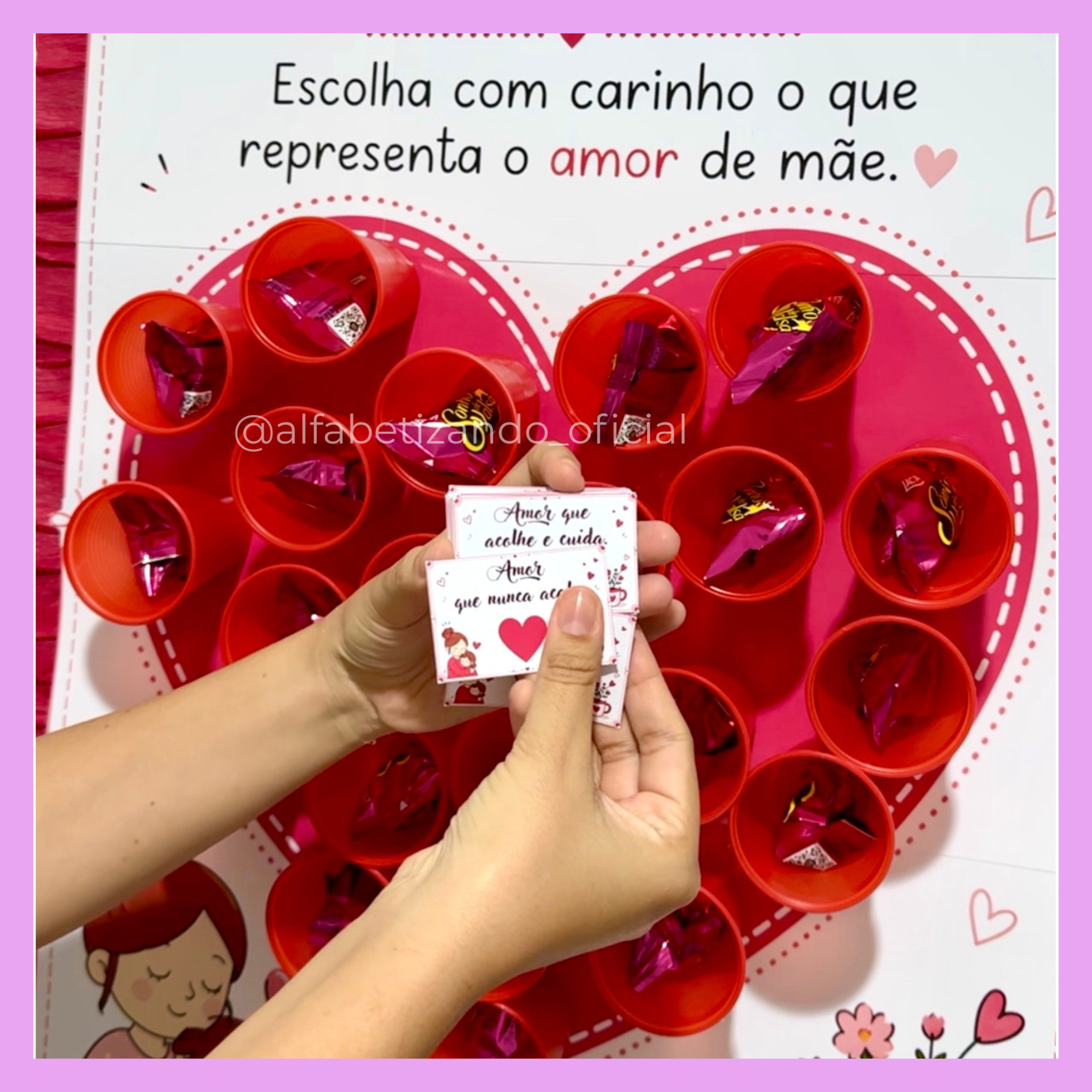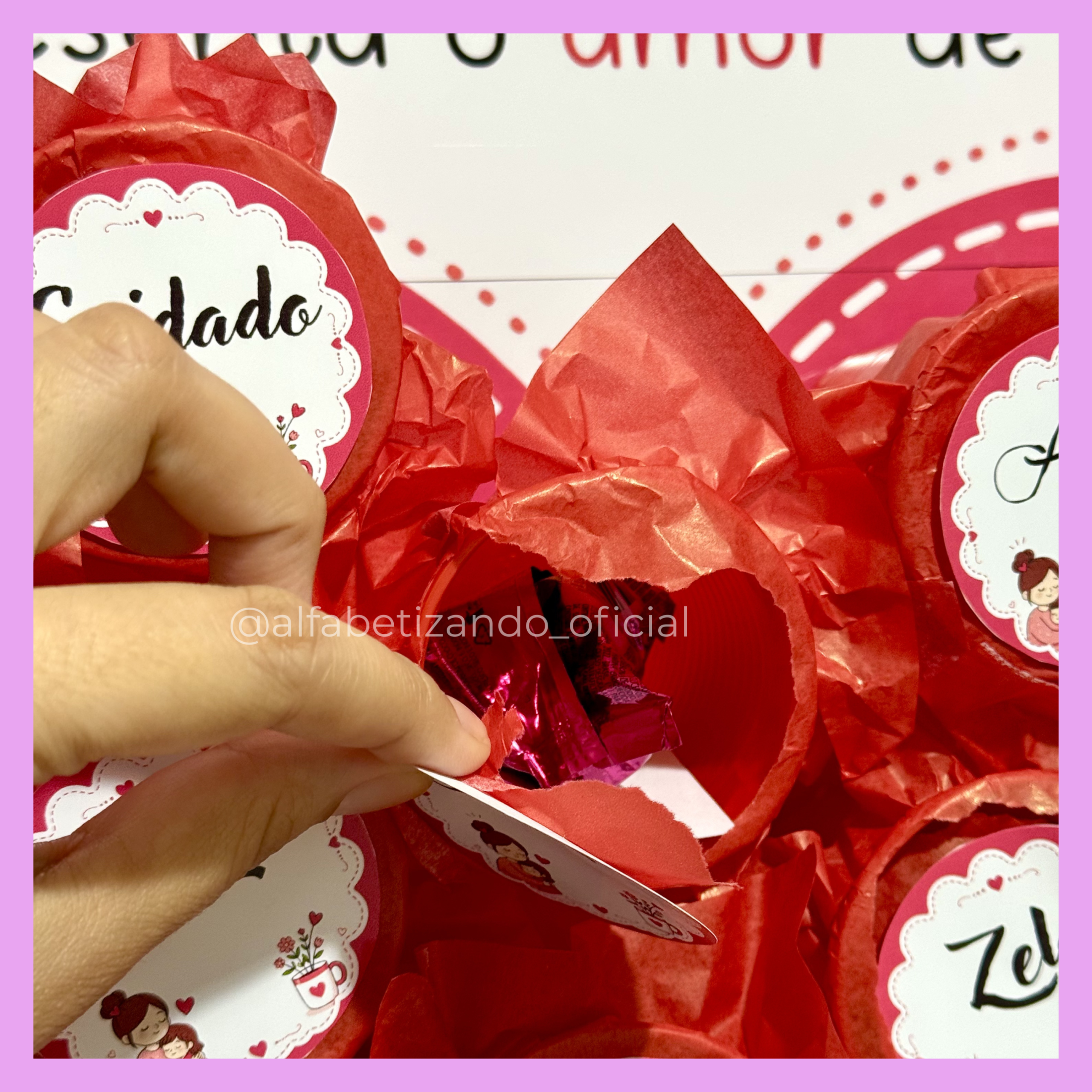 Acompanha 28 cartões pequenos em formato retangular e 28 cartõezinhos redondos para colocar na boca do copo.
