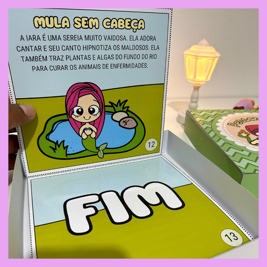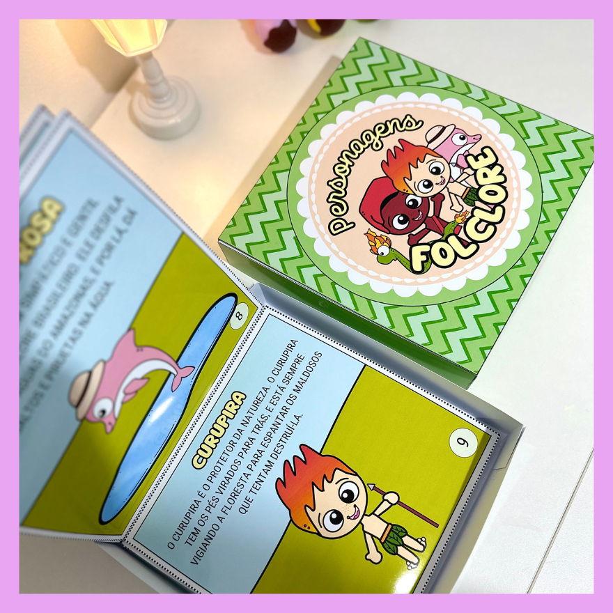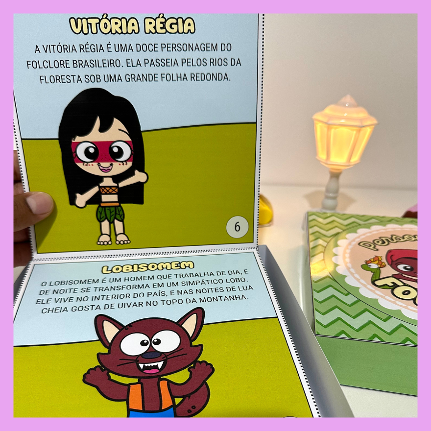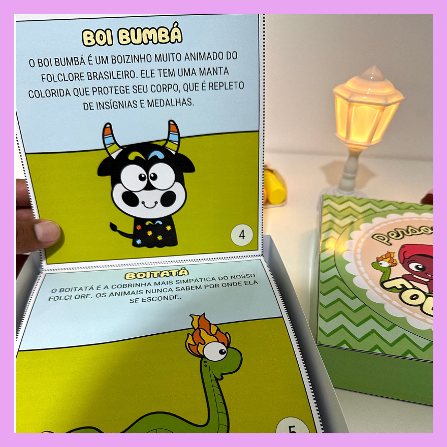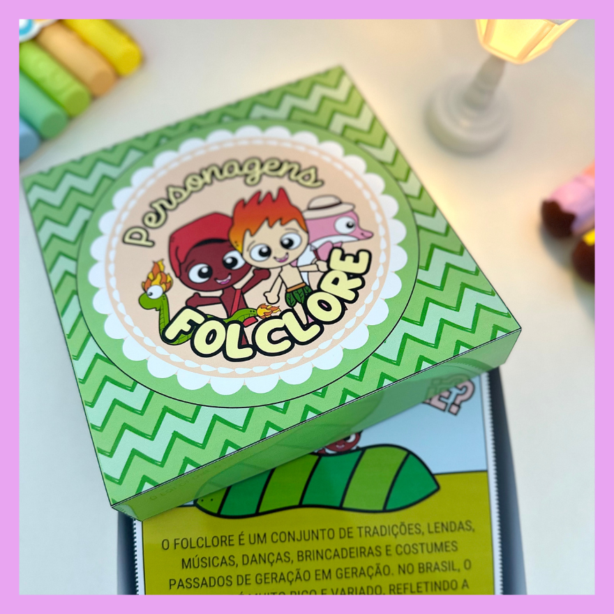 Livro na Caixa com a história do Folclore Brasileiro e também apresentação dos principais personagens. Proposta excelente para ser utilizado em turmas da Educação Infantil e séries iniciais do Ensino Fundamental. Acompanha vídeo tutorial de montagem.