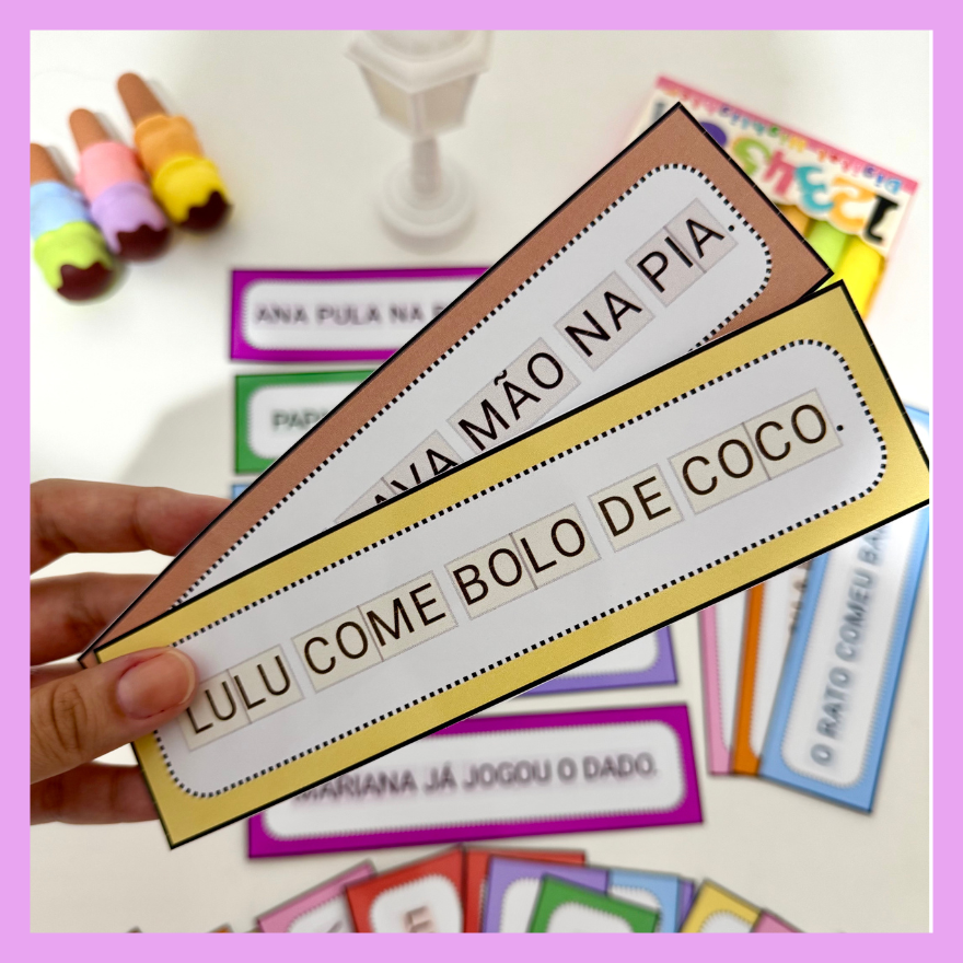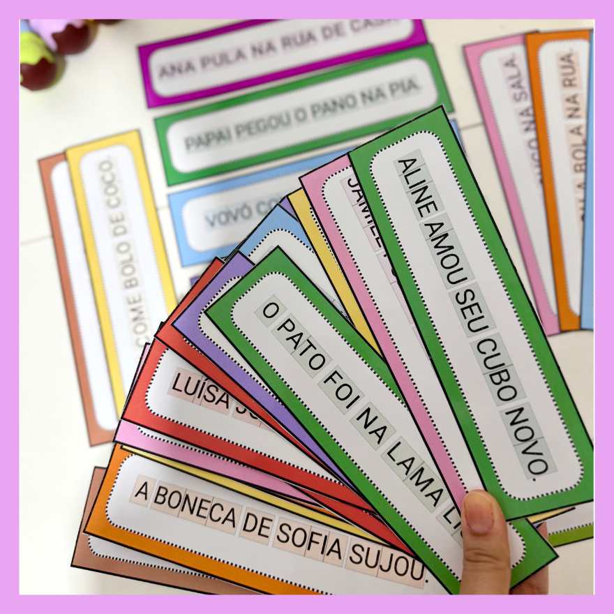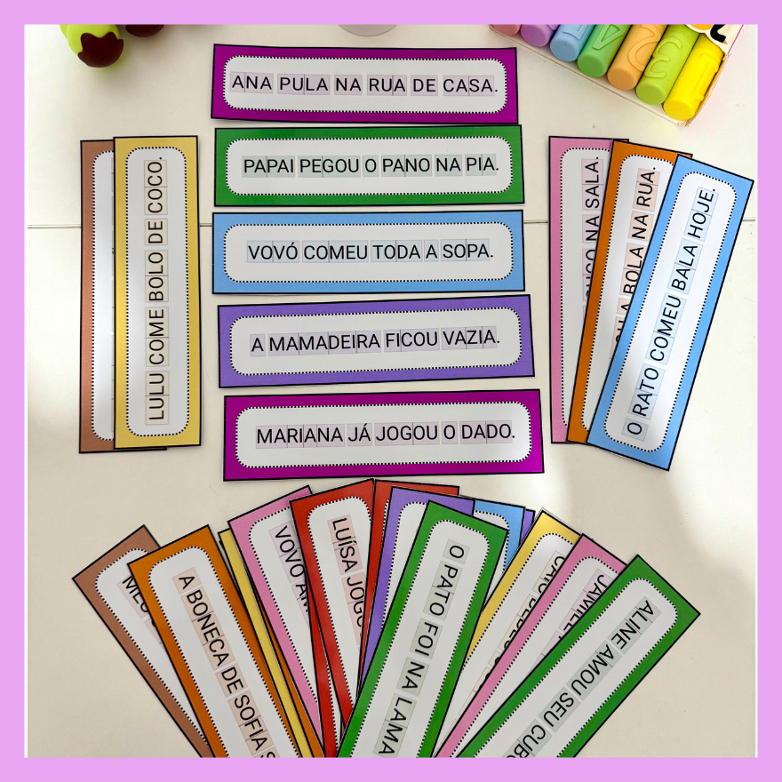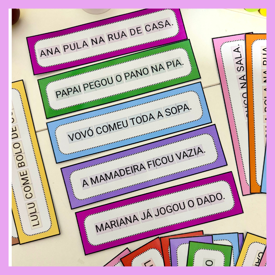 Recurso Frases Divididas Sílabas simples com 30 frases, ideal para crianças que estão iniciando a leitura de frases.