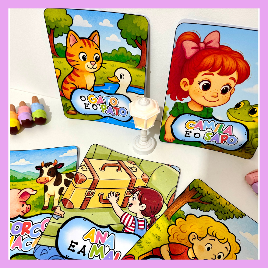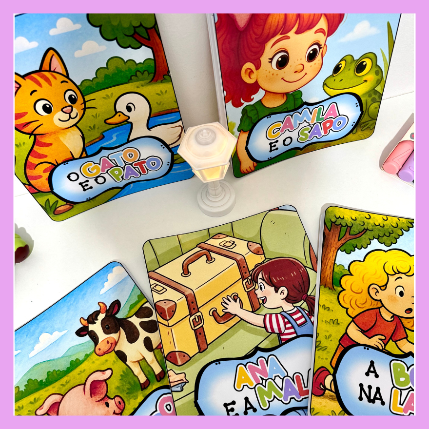 Nessa proposta os livros tem apenas uma frase por página, frases curtas e na maioria das vezes com palavras de sílabas simples. Histórias com começo, meio e fim.