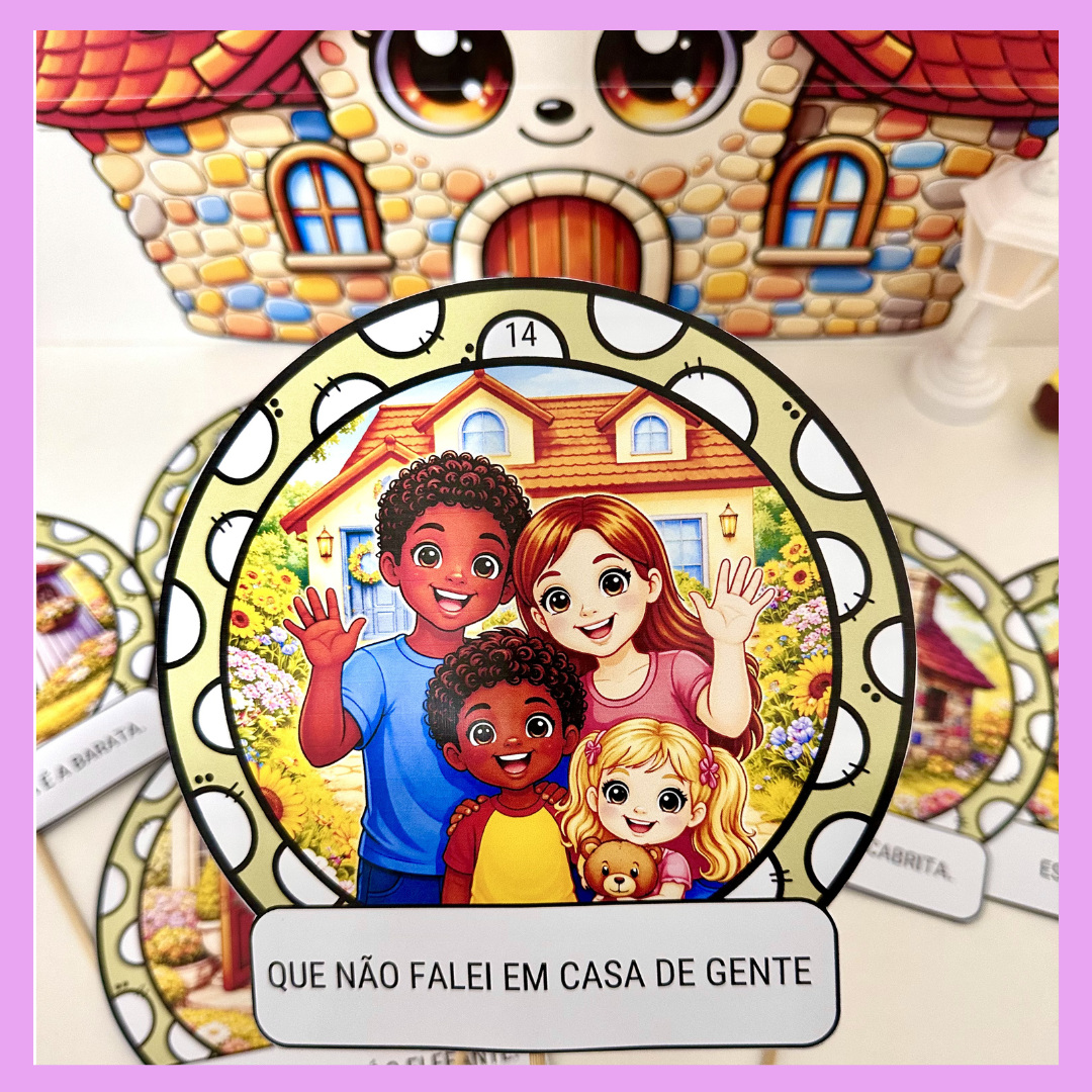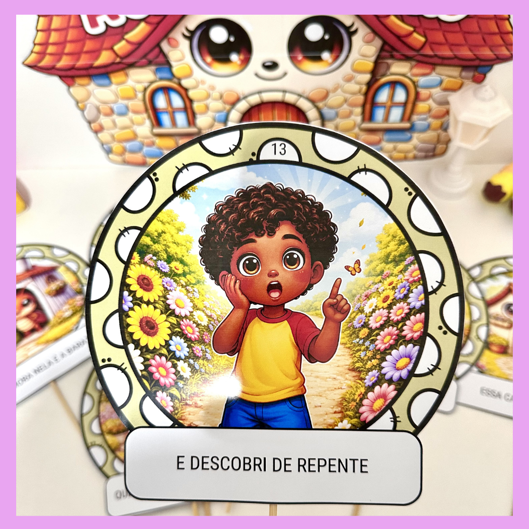 São 24 páginas para impressão, sendo 10 para a sacola e 14 para a história. História linda ilustrada e enumerada para facilitar o momento da contação. Vai com 14 cards com a história ilustrada.