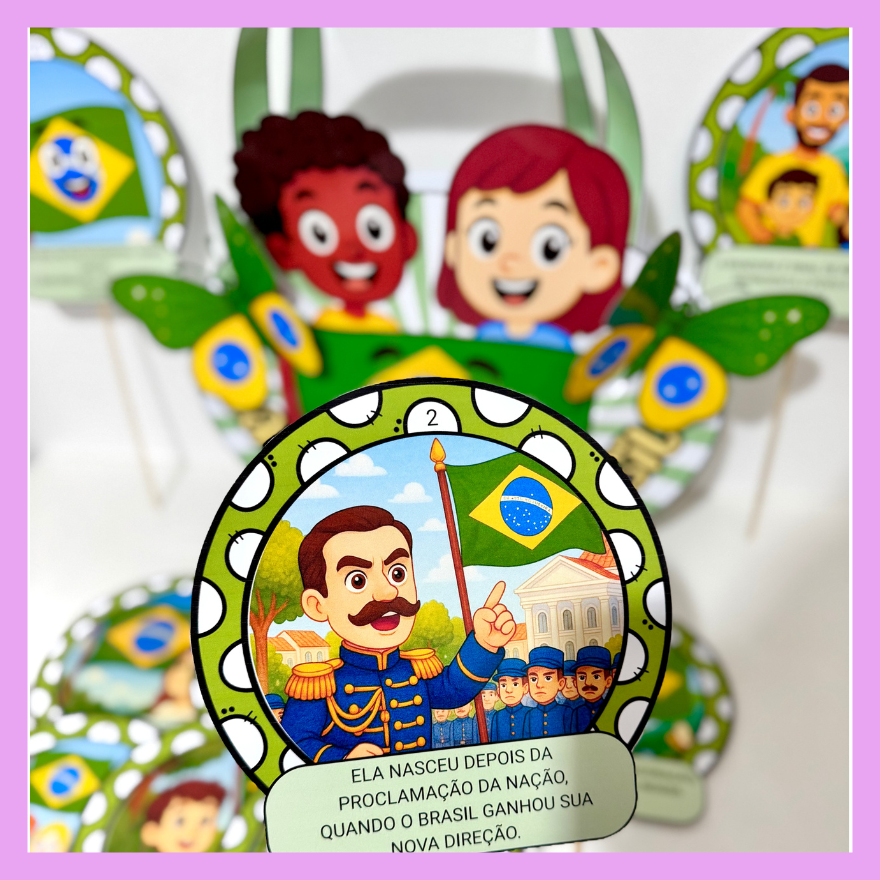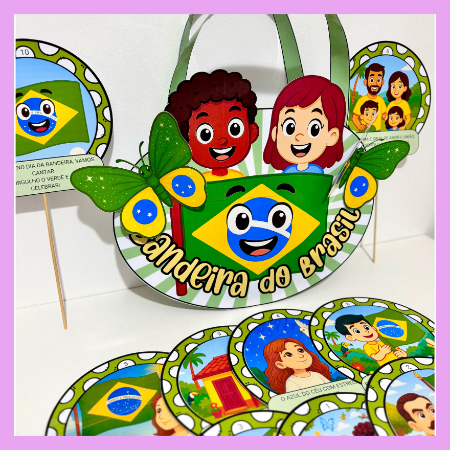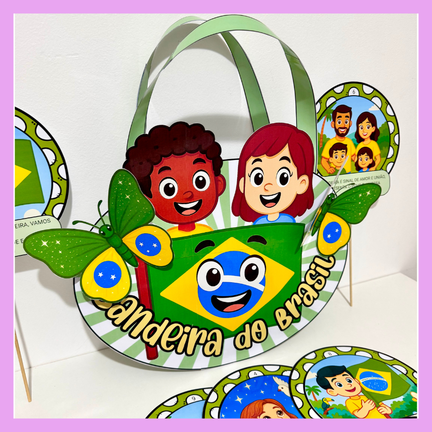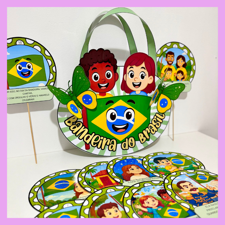 Sacola com o poema rimado para trabalhar o tema Dia da Bandeira com crianças da Educação Infantil e séries iniciais do Ensino Fundamental.
