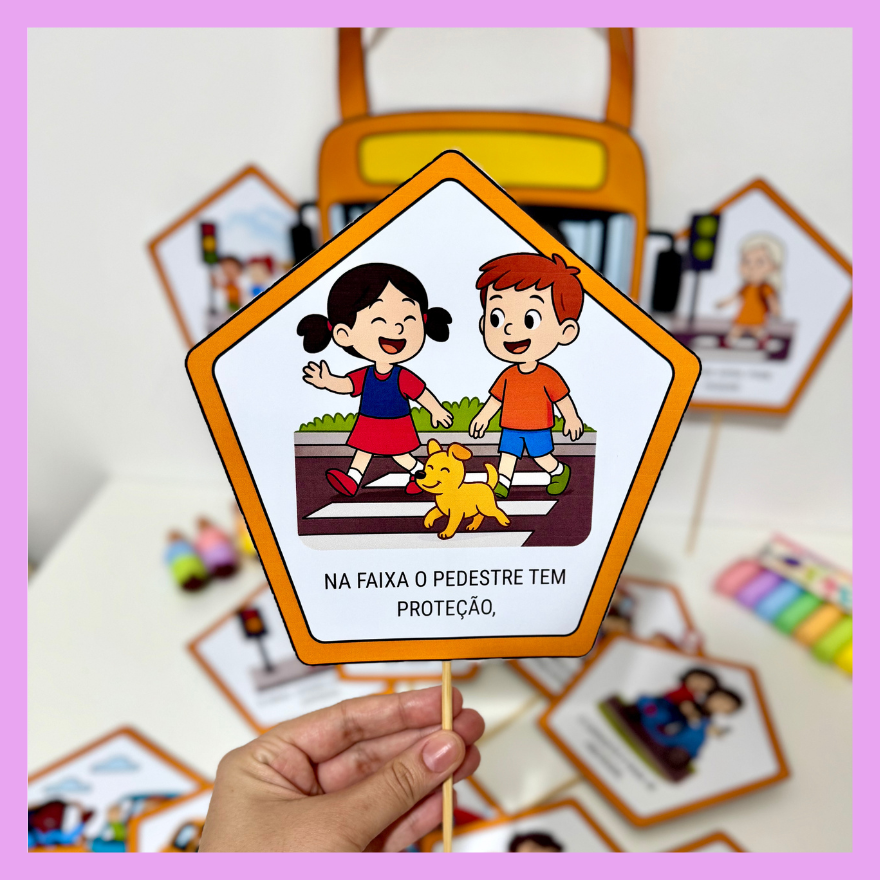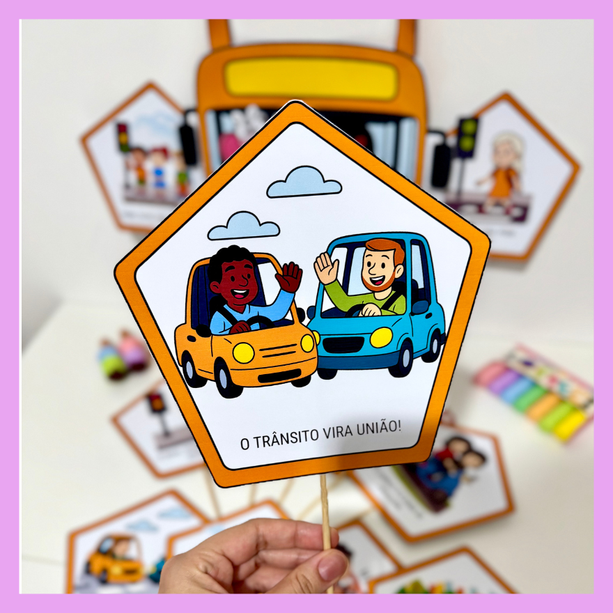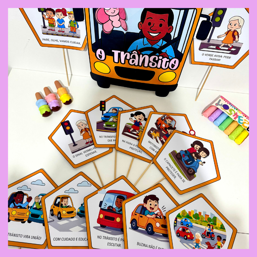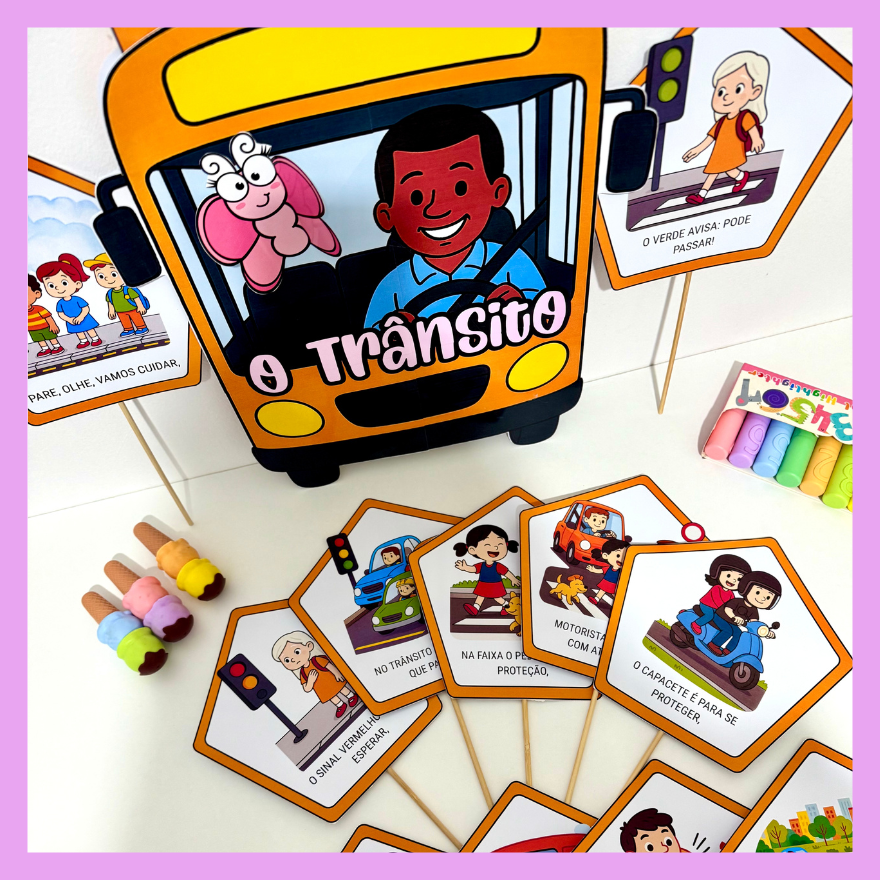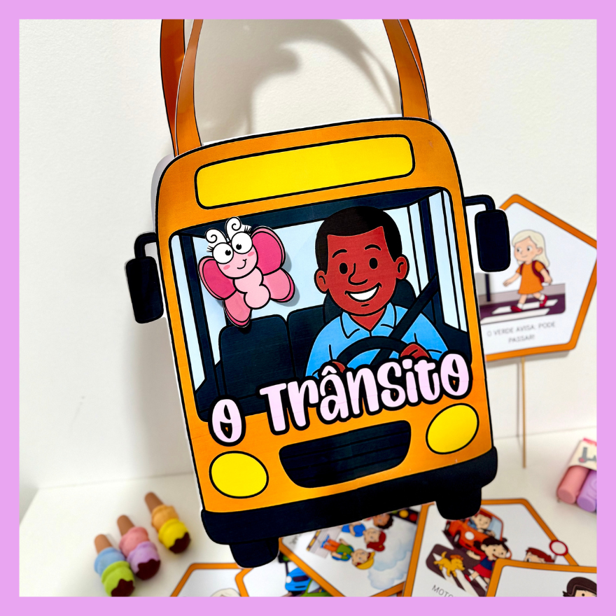Sacola com a história rimada “O Trânsito” para trabalhar o tema com crianças da Educação Infantil e séries iniciais do Ensino Fundamental.