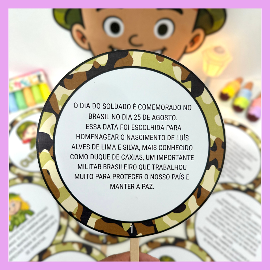 🎯 Ideal para trabalhar o Dia do Soldado 📅 com Crianças da Educação Infantil e séries iniciais do Ensino Fundamental.