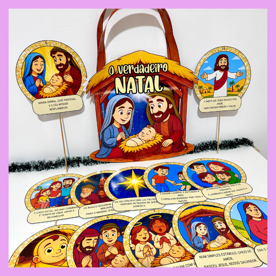 Sacola com o poema rimado O Verdadeiro Natal para trabalhar o tema com crianças da Educação Infantil e séries iniciais do Ensino Fundamental.