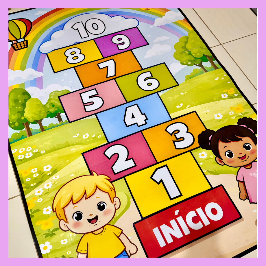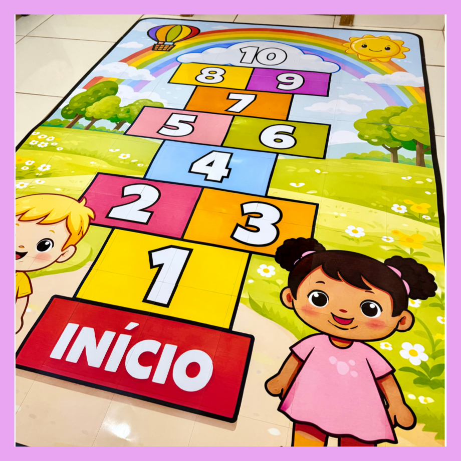 Tapete Amarelinha Gigante para ser utilizada com turmas da Educação Infantil.